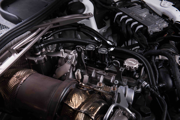 RacingLine’s V6T Catch Can System replaces the factory PCV with a gloss black billet PCV replacement block. It features two internally-baffled separator turrets and also deletes the failure-prone factory PCV check-valve. The new PCV block also incorporates a beautiful billet oil filler cap – not only pleasing to use, but ensures no more oil 'weeping' from the factory plastic cap.